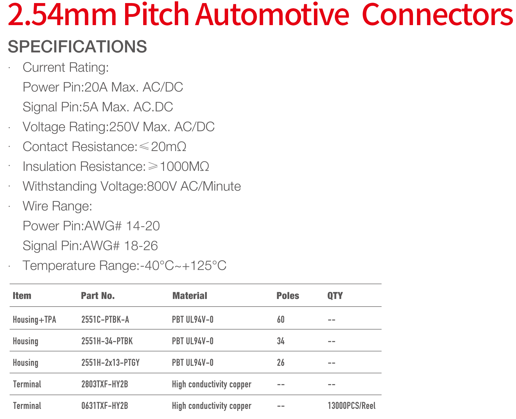 2551 Series 2.54mm Pitch (.100") 車用連接器