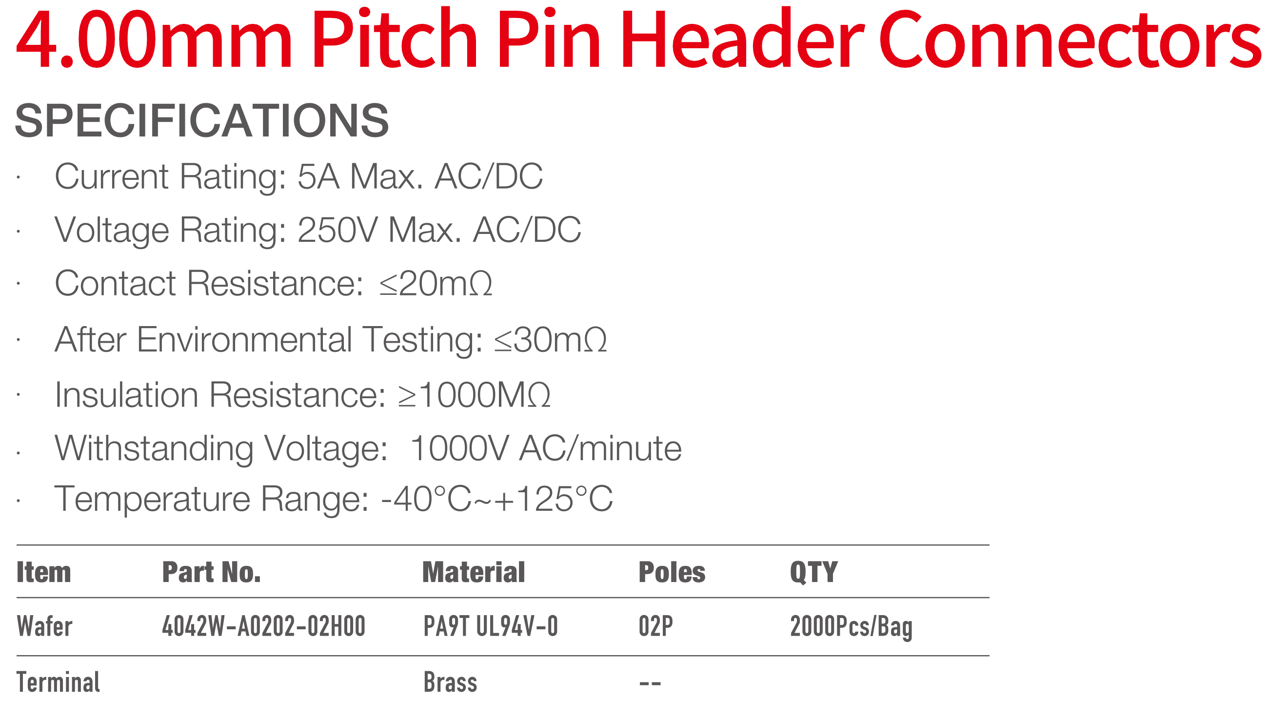 4042 Series 4.00mm Pitch (.157")排針連接器