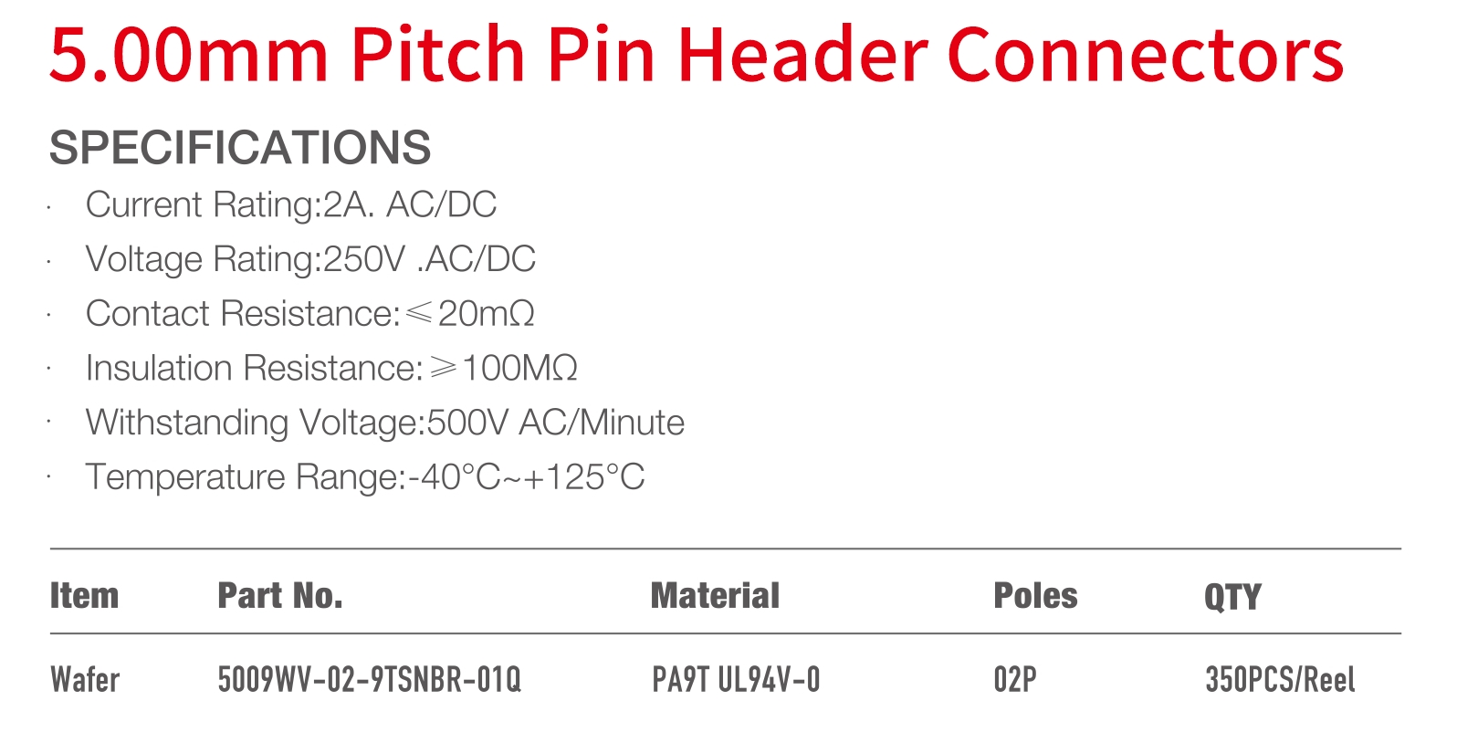 5009 Series 5.00mm Pitch (.197") 排針連接器