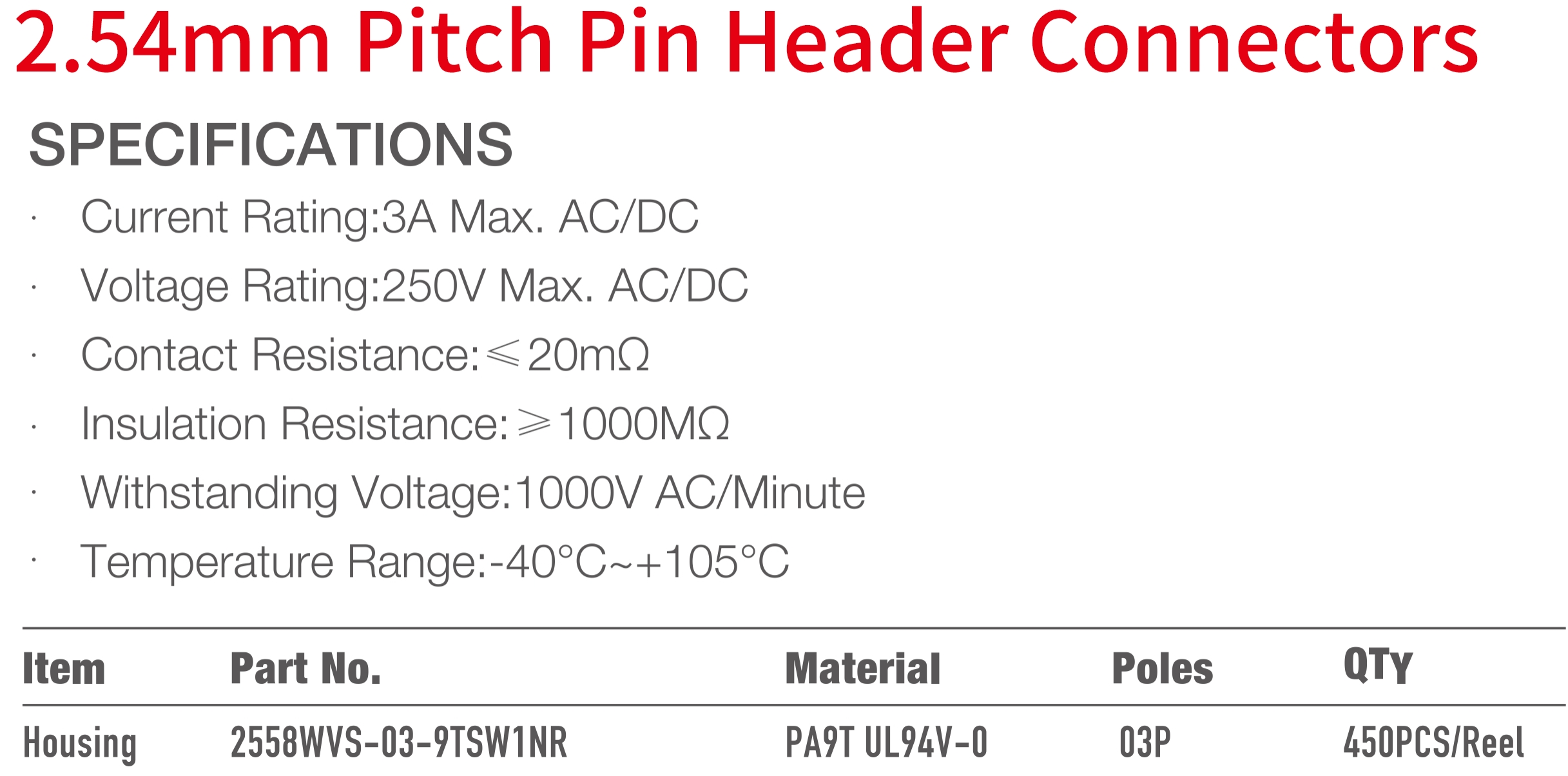 2558 Series 2.54mm Pitch (.100") 排針連接器