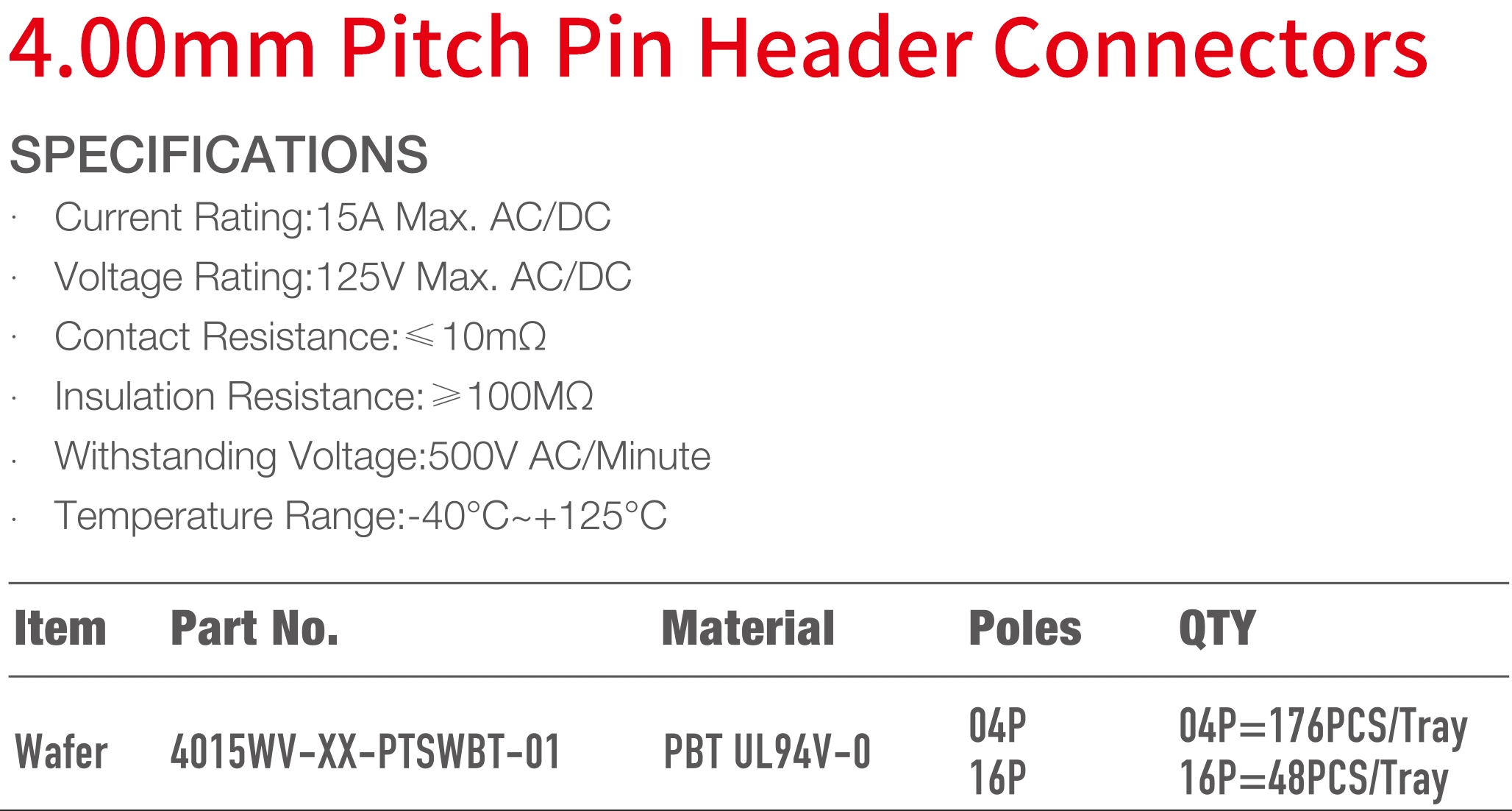 4015 Series 4.00mm Pitch (.157") 排針連接器