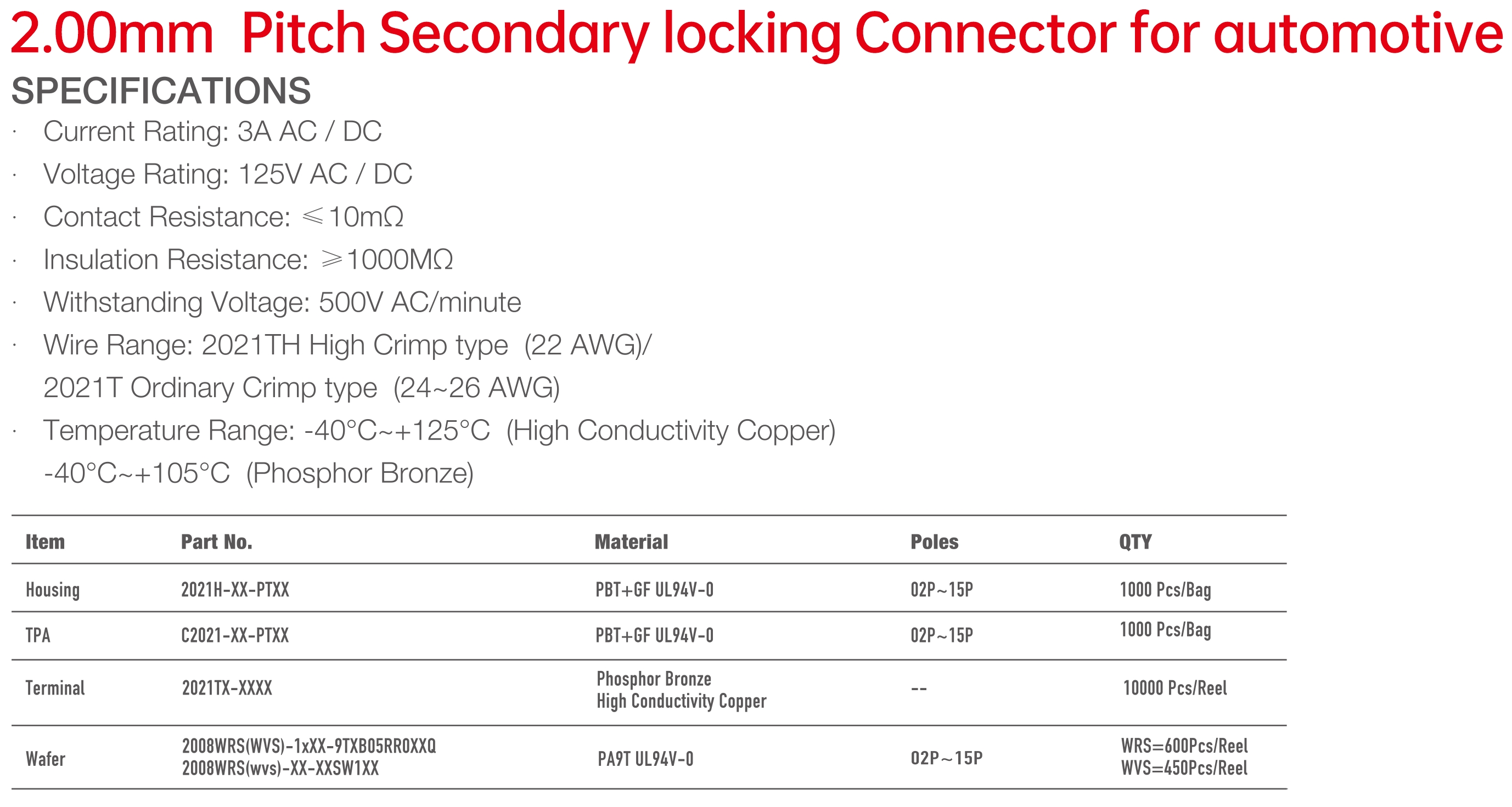 2021 Series 2.00mm Pitch (.079") 車用二次鎖扣連接器