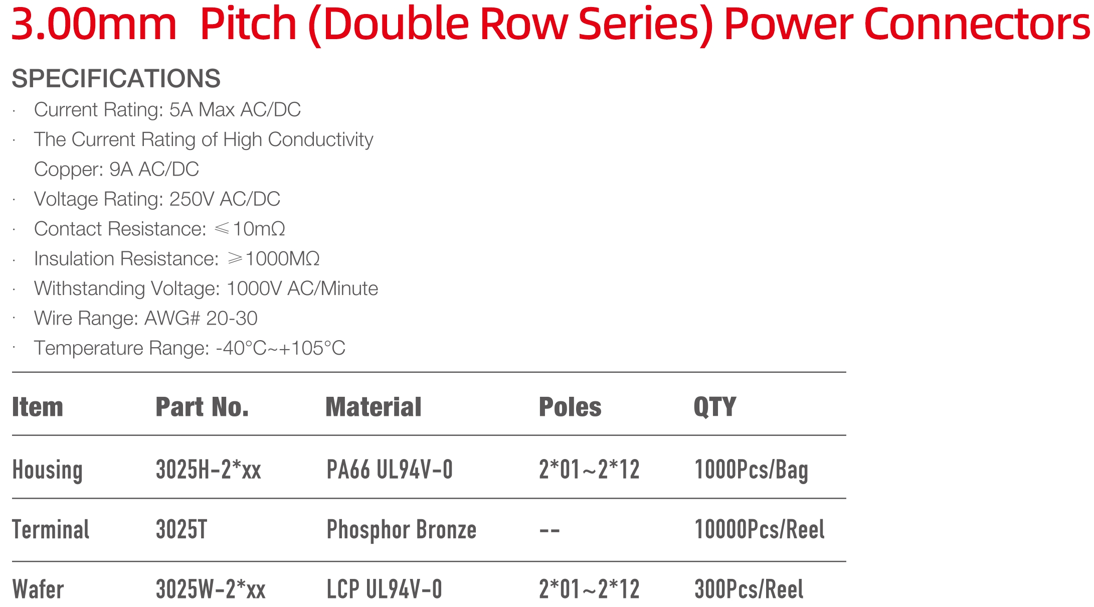 3025 Double Row Series 3.00mm Pitch (.118") 電源連接器