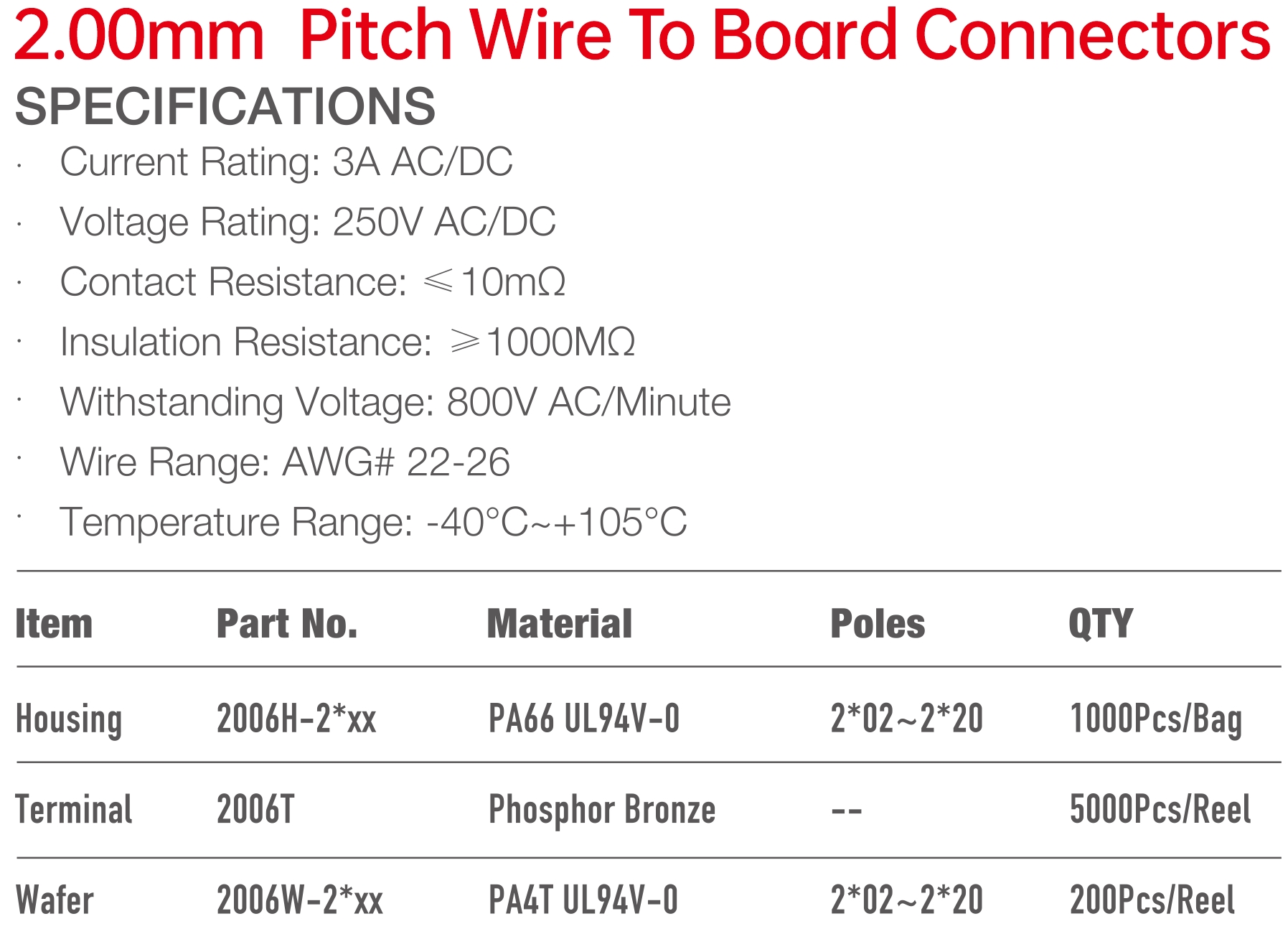 2006 Series 2.00mm Pitch (.079'') 線對板連接器
