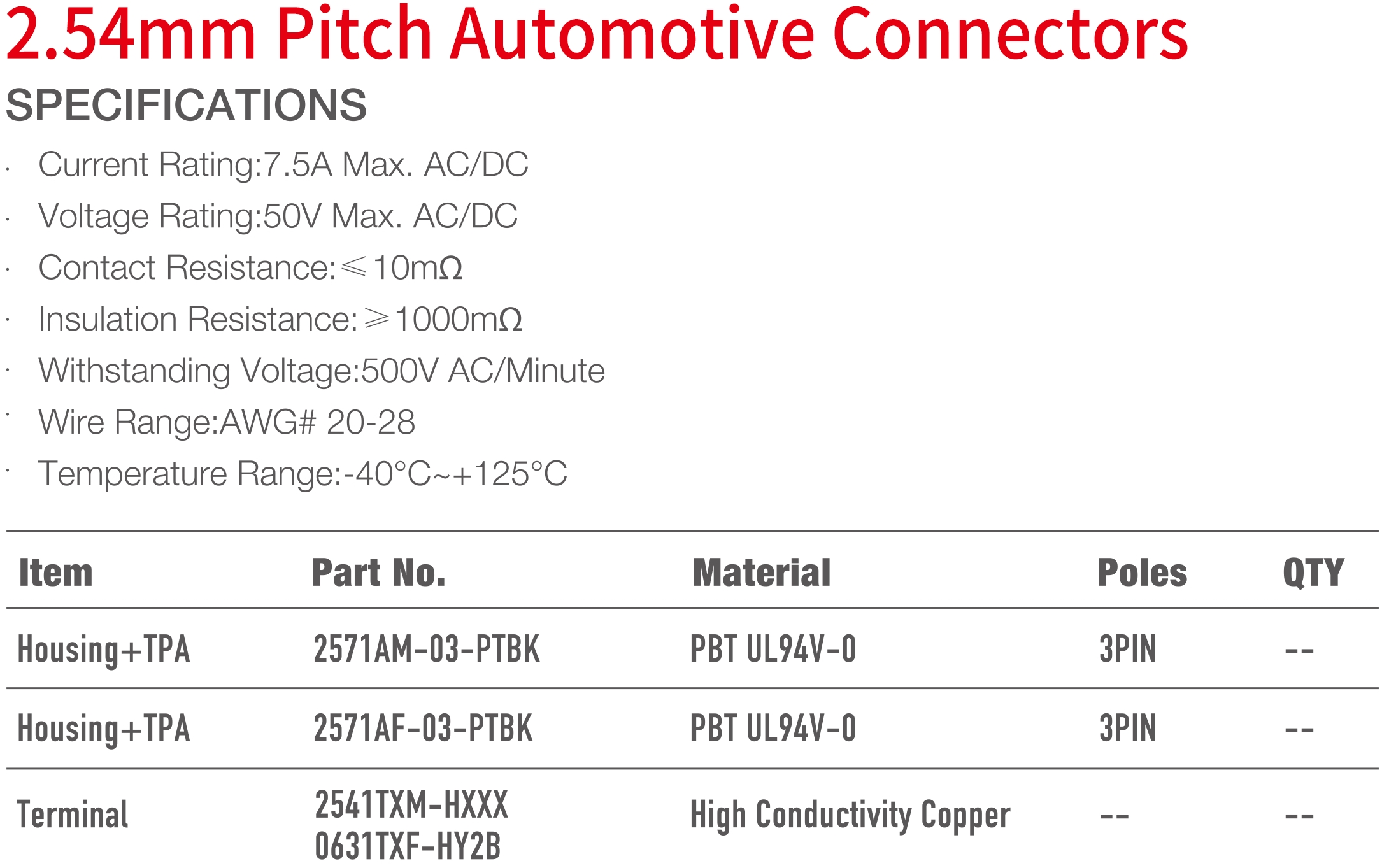 2571 Series 2.54mm Pitch (.100") Automotive Connectors