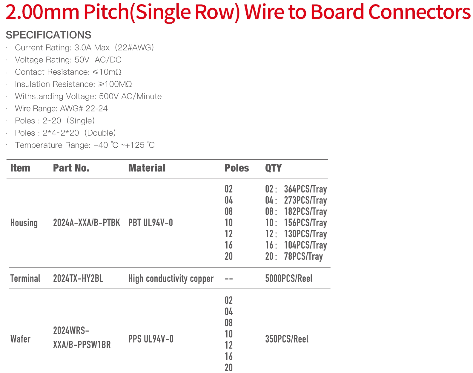 2024A Single Row Series 2.00mm Pitch (.079") Wire To Board Connectors