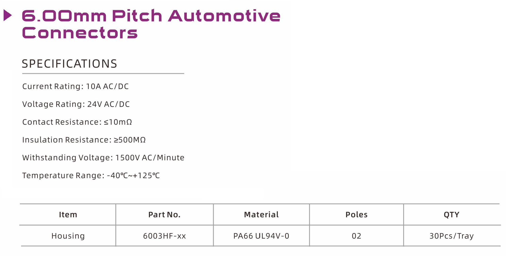 6003 Series 6.00mm Pitch (.236") 車(chē)用連接器