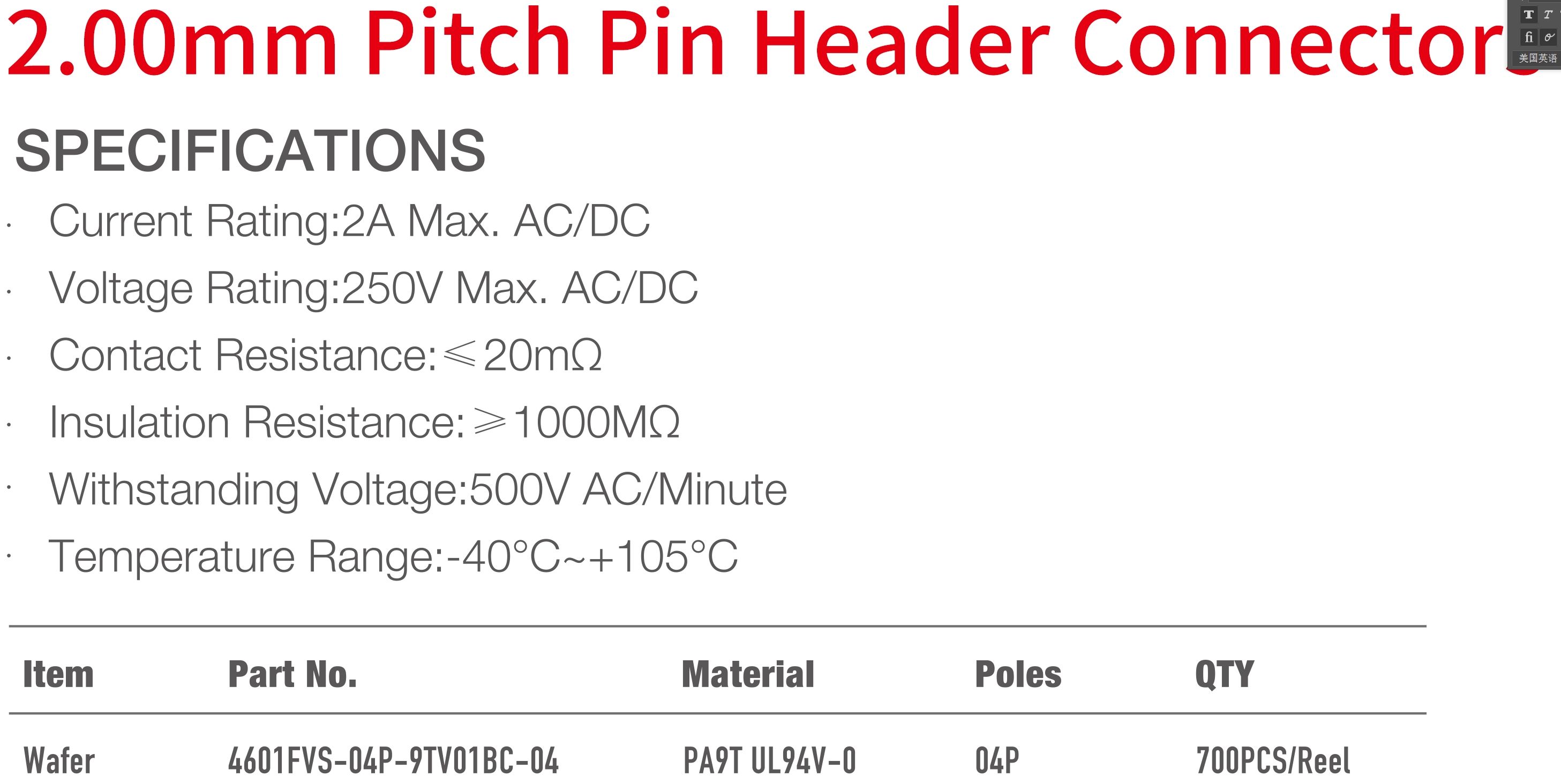 4601 Series 2.00mm Pitch (.079") 排針連接器