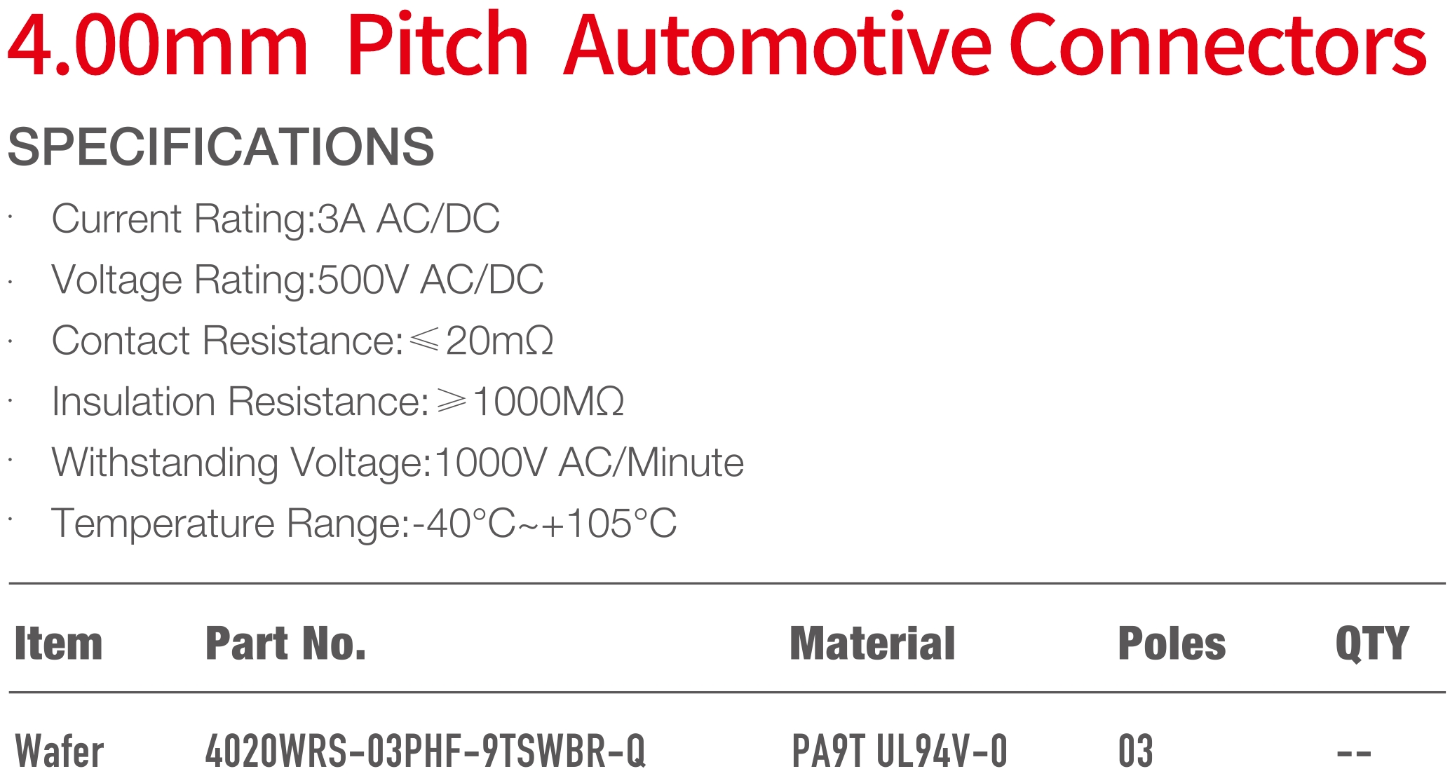 4020 Series 4.00mm Pitch (.157") 車用排針連接器