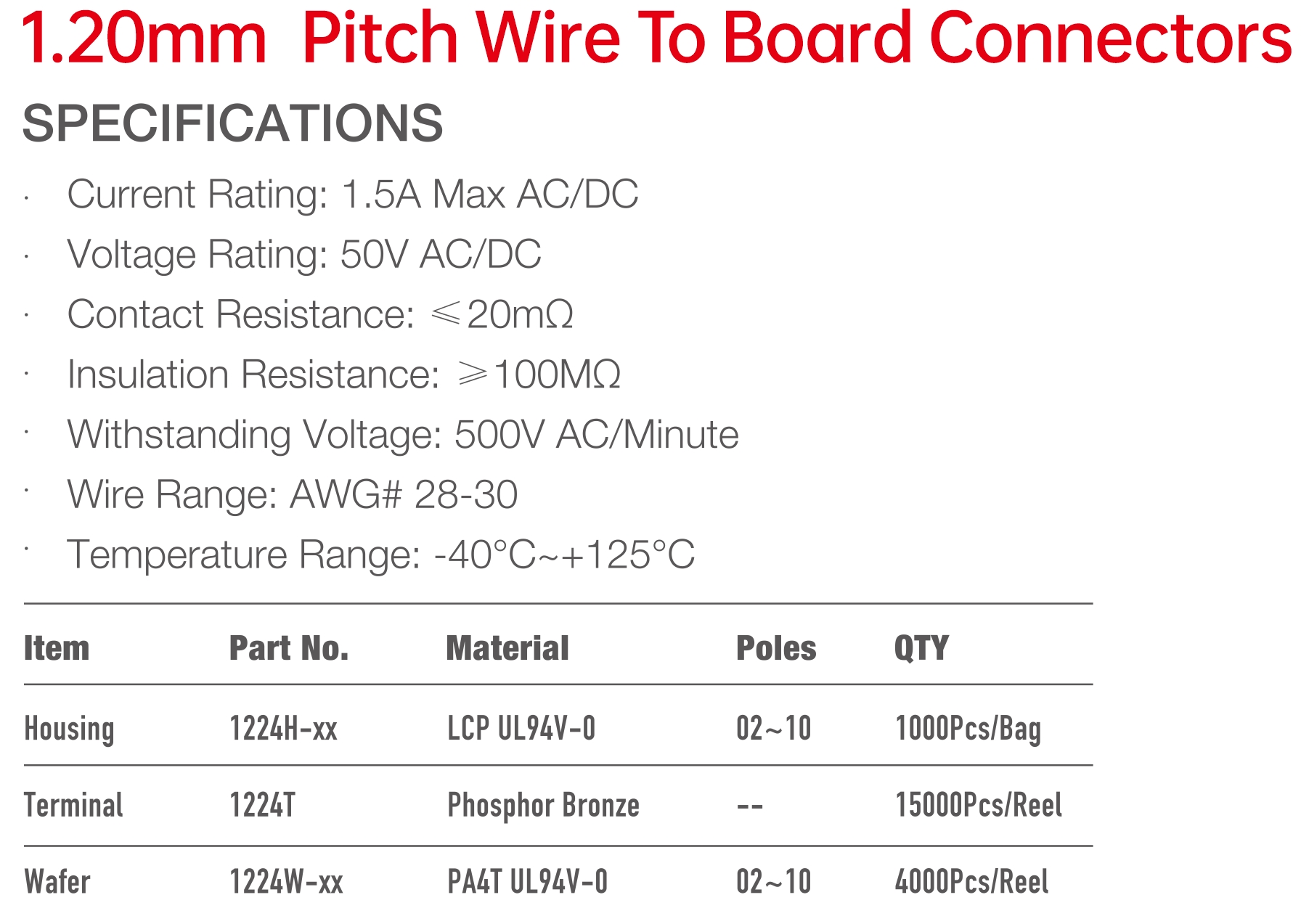 1224 Series 1.20mm Pitch (.047") 線對板連接器
