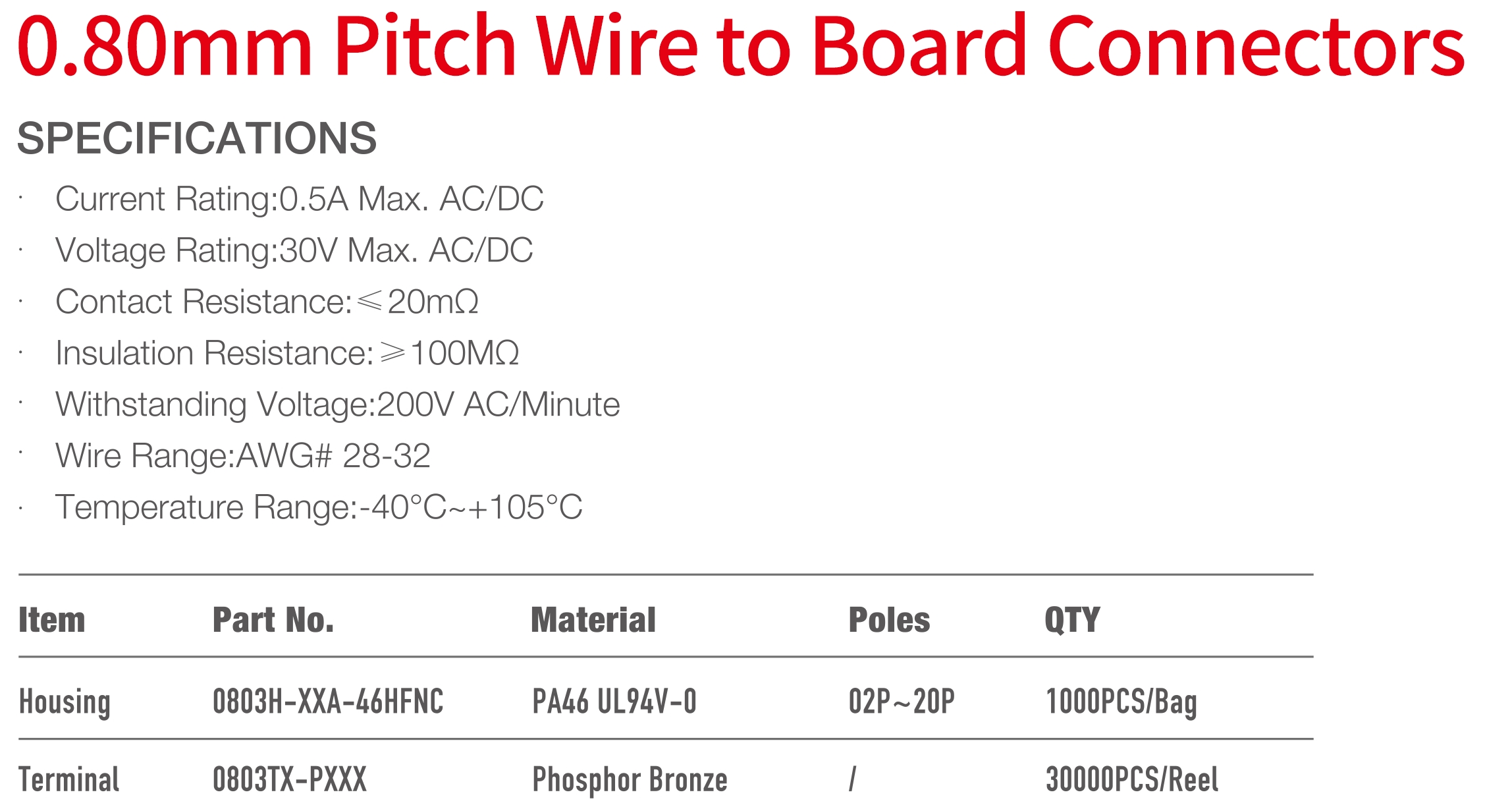 0803 Series 0.80mm Pitch (.031") 線對板連接器