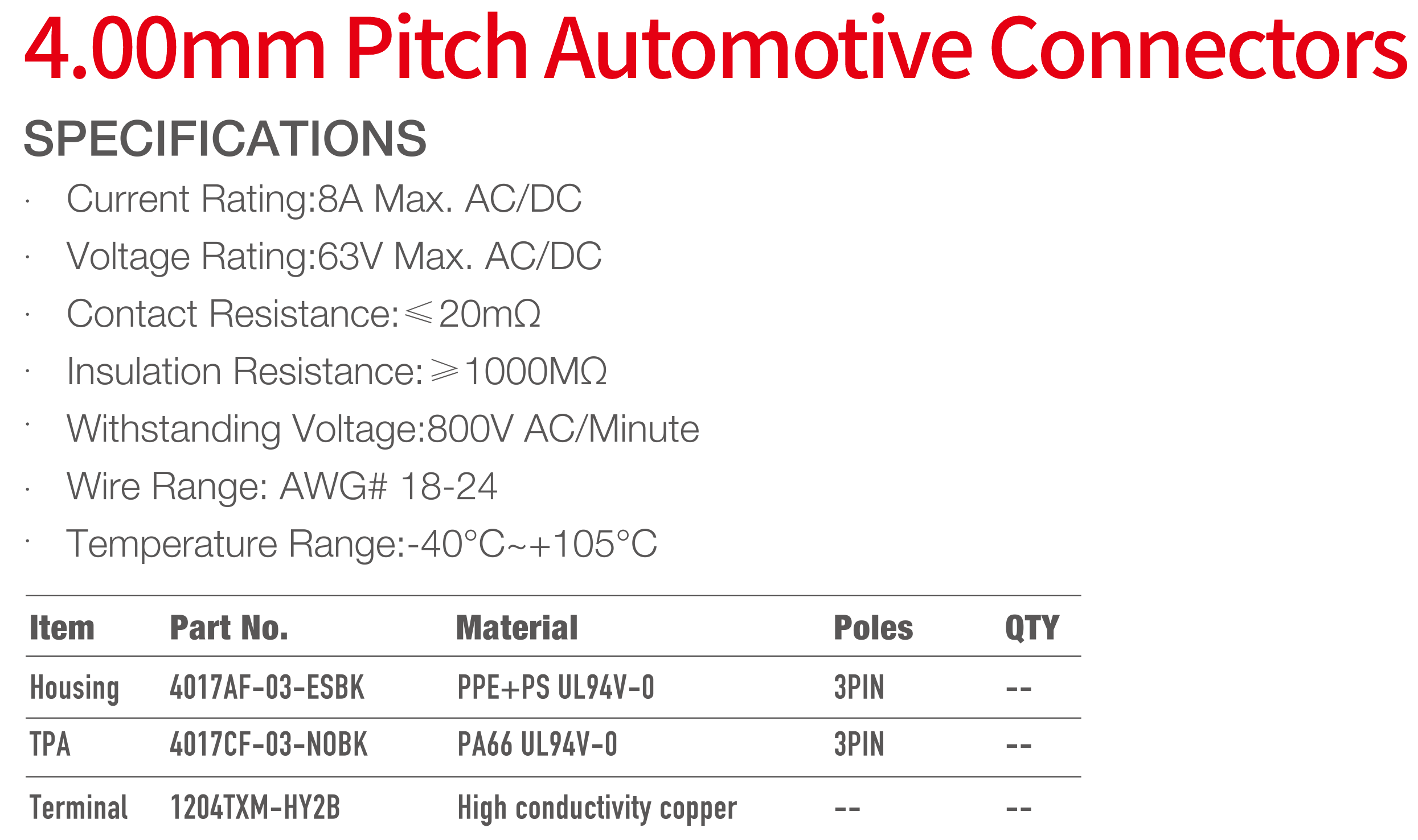 4017 Series 4.00mm Pitch (.157") 車用連接器