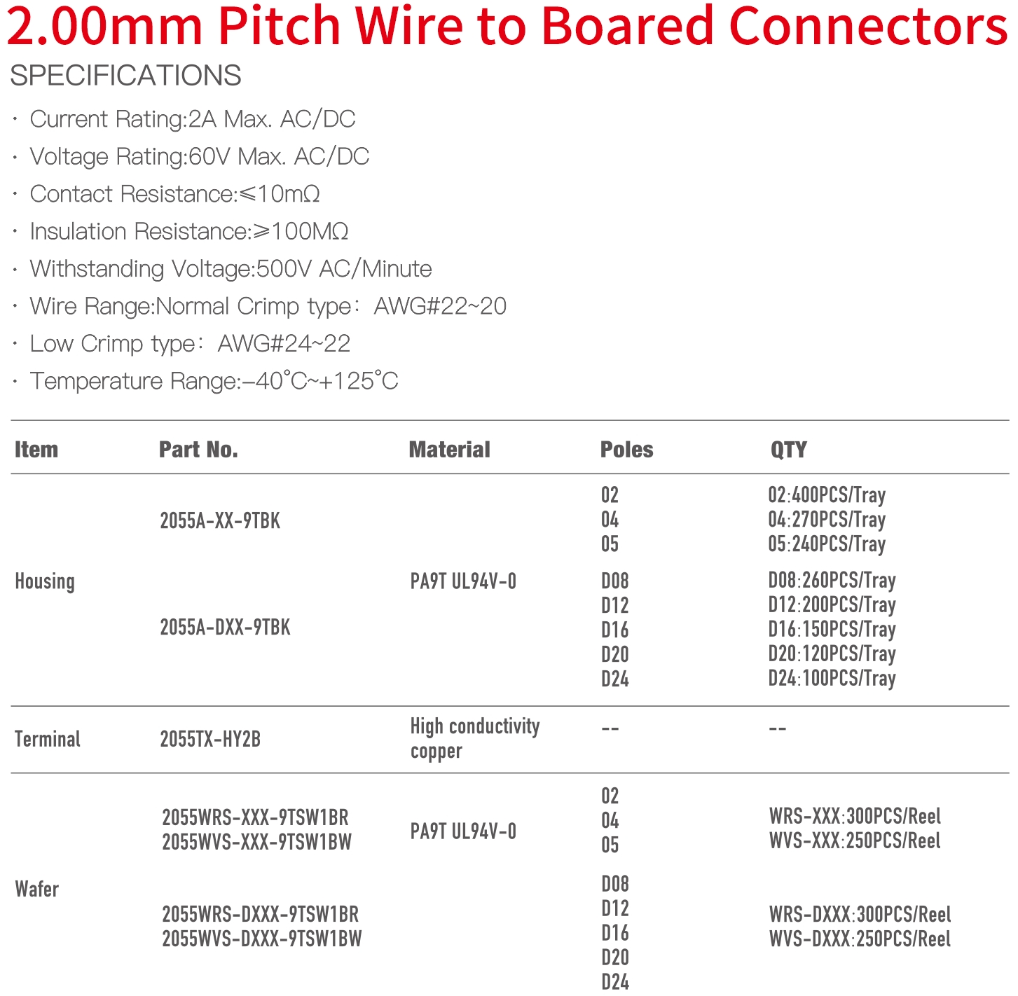 2055 Series 2.00mm Pitch (.079") Wire to Board Connectors